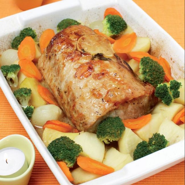 Klasična svinjska pečenka s pisano zelenjavo