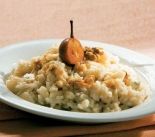 Solata s hruško, datlji in orehi ter prelivom iz sira z modro plesnijo