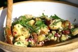 Topla regratova solata s krompirjem in fižolom