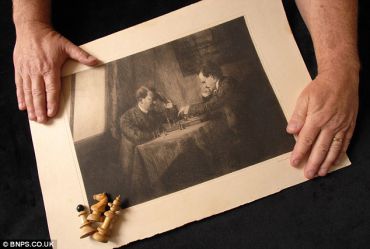 Spopad ideologij: na prodaj slika, na kateri Hitler in Lenin igrata šah
