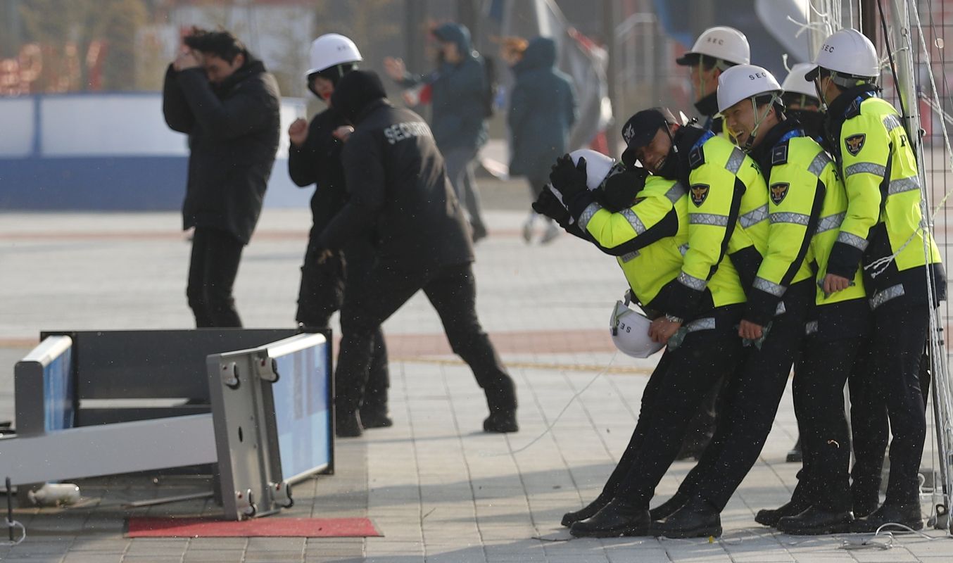 Police officers in the fight against the wind