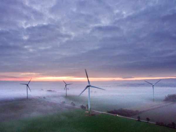 Wind turbines in fog