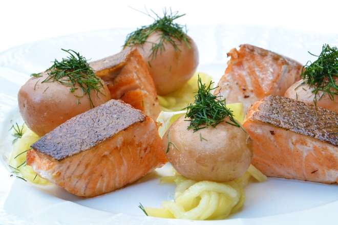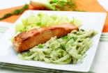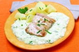 Baked salmon with cucumber sauce