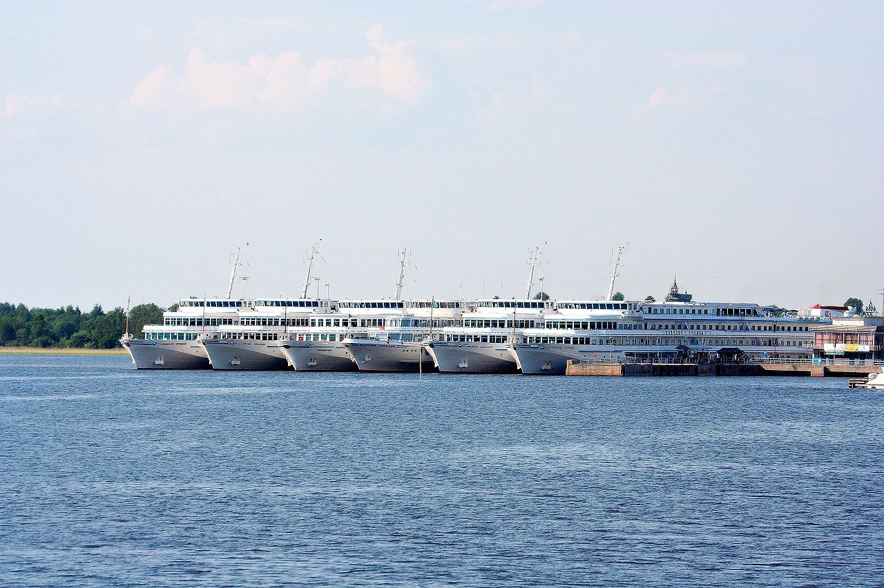 Lake Onega. River cruise ships at quay in Kizhi