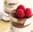 V skodelice ali kozarce izmenično nalagajte plasti smetane, ohlajene čokoladne kreme, pi??kotov in malin.