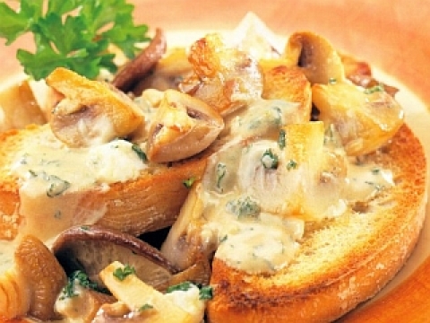 Gobe očistimo in nare??emo na večje ko??čke. Popra??imo jih na olju ter začinimo s soljo, poprom in z nasekljanim česnom. Suhe paradi??nike odcedimo.