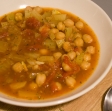Sestavine: 30 dag čičerike, 3 paradi??niki, 30 dag blitve, 3 dag suhih jurčkov, 3 krompirji, 1 čebula, 3 korenčki, najmanj 1,5 litra ju??ne osnove, lovorjev list, ro??marin, olivno olje, sol, poper.