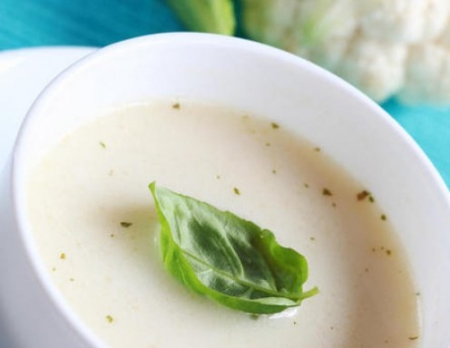 Cvetačno juho postrezite z opečenimi kockami kruha.
