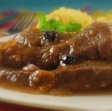 Sestavine: 1 kg telečjih zrezkov, 1 manj??a čebula (ali pol večje), 5 strokov česna, 2 korenčka, sol, poper, 1 ??lica olivnega olja, ju??na osnova.