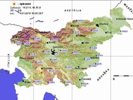 Več potresnih sunkov na območju Pivke