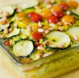 Pečico ogrejemo na 200 stopinj Celzija. Polento razre??emo na rezine. Bučke in rezine polente izmenično kot stre??nike nalagamo v nama??čen pekač.