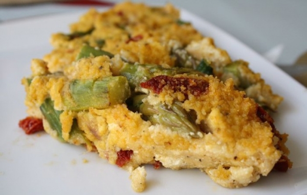 Pečena polenta s pestom iz suhega paradižnika in pinjol