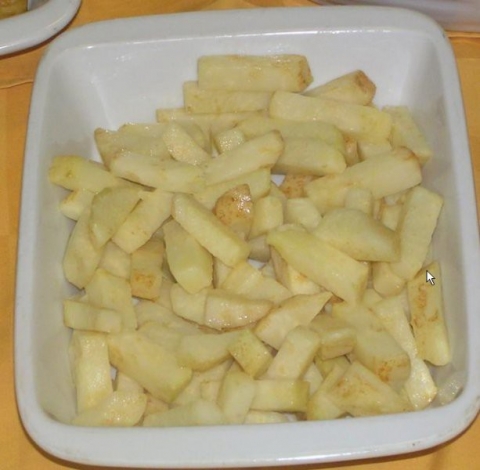 Ponovimo, da porabimo vse sestavine. Potresemo s kosmi masla in pečemo pribli??no 25 minut v pečici, ogreti na 180 stopinj Celzija.