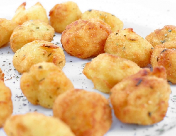 Z ??lico zajamemo mesno me??anico in jo na dlani nekoliko splo??čimo. Na sredo vtisnemo kroglico mocarele, okoli katere meso oblikujemo v droben cmok. To počnemo, dokler nam ne zmanjka sestavin. Kosmiče fino zdrobimo, stresemo v kro??nik, potem pa v njih povaljamo mesne kroglice in kosmiče z dlanmi ne??no pritisnemo k mesu. V globoki ponvi segrejemo olje, v katerem cmoke zlato rjavo ocvremo. Ocvrte s penovko poberemo iz olja in odcedimo na papirnatih kuhinjskih brisačah. Postre??emo kot predjed z gosto paradi??nikovo, paprikovo, pikantno, gobovo ali poljubno drugo toplo ali hladno omako.