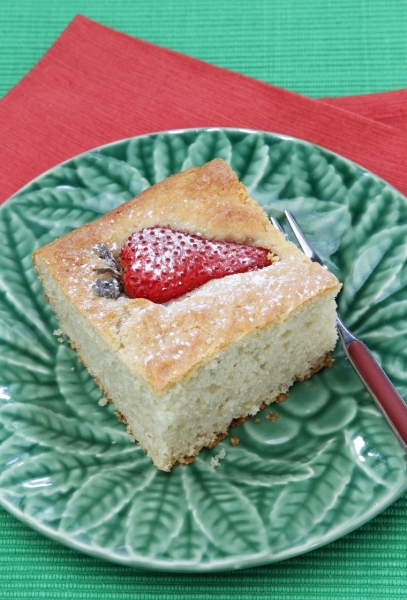 Testo stresemo v pripravljen pekač, ga postavimo v ogreto pečico in pečemo 10 minut. Nato na vrh polo??imo cele ali prerezane jagode in pečemo ??e 15 minut.