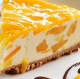 Sestavine: 150 g otro??kih pi??kotov, 125 g masla, 20 g kokosove moke, 600 g sirnega namaza, 300 g jogurta, 6 listov ??elatine, 3 ??lice limoninega soka, 75 g sladkorja, zrel mango, 150 ml multivitaminskega soka, ??lico ??kroba.