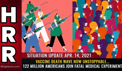 Smrtonosni val 'cepljenja' je neustavljiv |122 milijonov Američanov je zdaj ogroženih zaradi nevarnega medicinskega eksperimenta, ki ga ni mogoče razveljaviti (15.04.2021) | newsexchange ... Po podatkih strani CDC Covid Data Tracker je več kot 122 milijonov Američanov že prejelo vsaj en odmerek cepiva covid. To je približno 37% prebivalstva, v ZDA pa se poveča za skoraj 2 milijona ljudi ... | Podobno