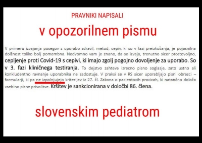 Civilna iniciativa slovenskih pravnikov: OPOZORILNO PISMO SLOVENSKIM PEDIATROM (04.07.2021) | newsexchange ... "Otroške zdravnike poskušamo ozavestiti, da za posledice cepljenja kazensko odgovarjajo. Žal številni zdravniki menijo, da je glavna odgovornost na njihovih predpostavljenih, pa temu ni tako. Za neželene ... | Podobno
