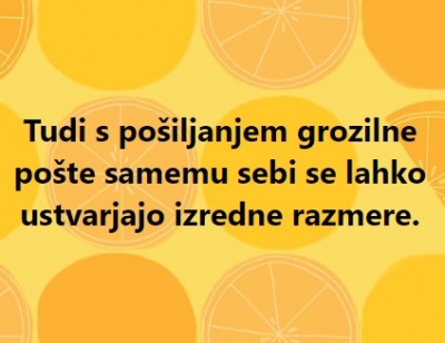 Tudi s pošiljanjem grozilne pošte samemu sebi se lahko ustvarjajo izredne razmere. (24.10.2021) | newsexchange ... Podobno