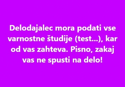 EU-SEARCH NOVICE | Delodajalec mora podati vse varnostne študije (test...), kar od vas zahteva. Pisno, zakaj vas ne spusti na delo! ...