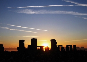 Sončni vzhod v Stonehengeu v Angliji med poletnim solsticijem na severni polobli