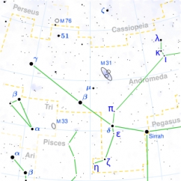 Ozvezdje se nahaja na severnem nebu blizu ozvezdja Pegaza. Splošna oblika spominja na dolgo, megleno in razvlečeno črko »A«. Najbolj znano nebesno telo v ozvezdju je Andromedina galaksija.
