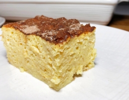 Sladica, ki jo boste pripravili v hipu. Vse sestavine preprosto zmešate skupaj, na koncu pa vmešate še beljakov sneg. Dobili boste sočno poslastico, ki bo lepo zaokrožila vaše kosilo. Če v trgovini ne boste našli prosene moke, v mlinčku zmeljite enako količino prosene kaše, namesto koruznega škroba pa lahko uporabite tudi prašek za vanilijev puding.
