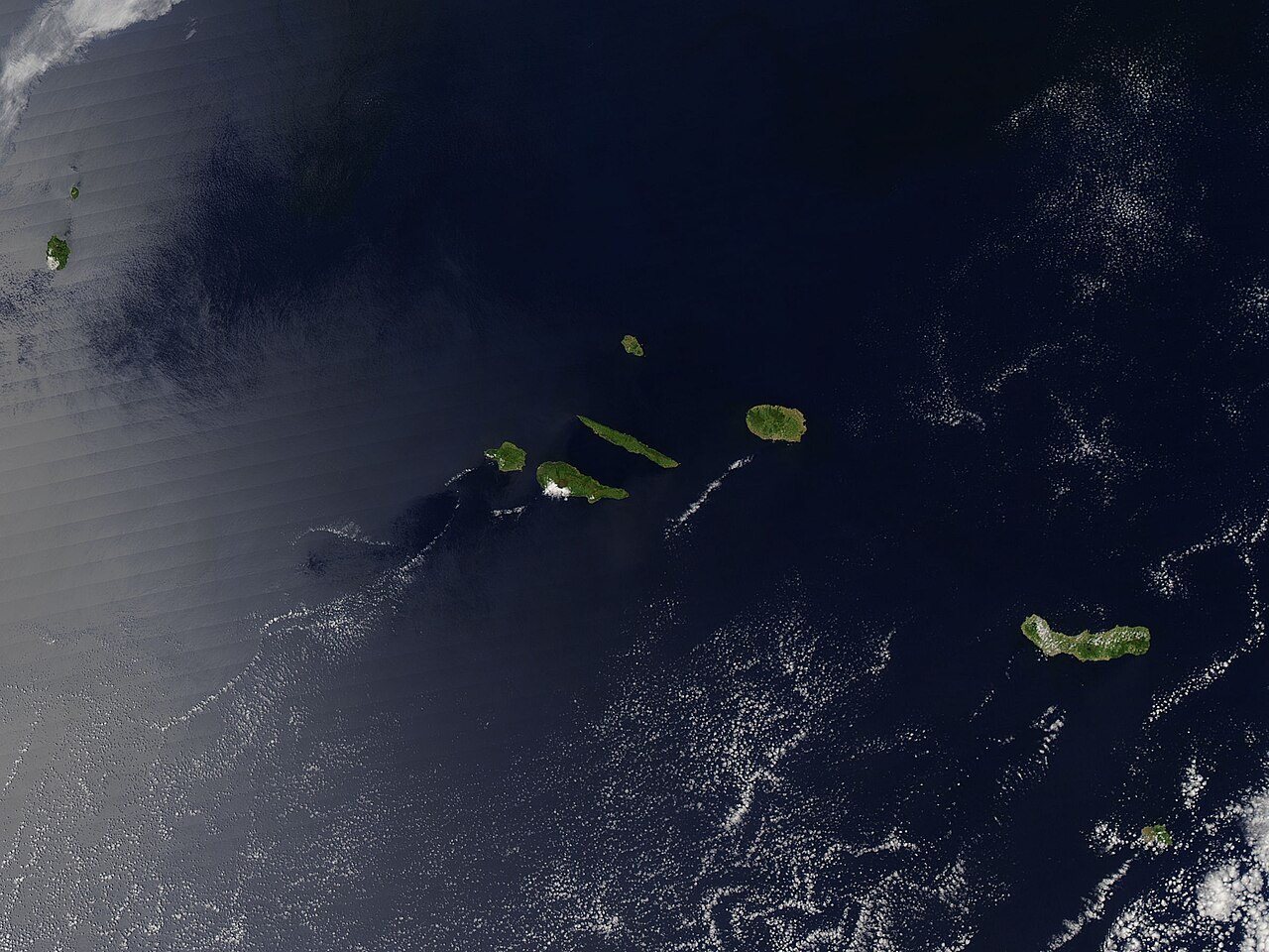 Azores (blue), Madeira (green) and the Canary Islands (yellow) in the northern Atlantic