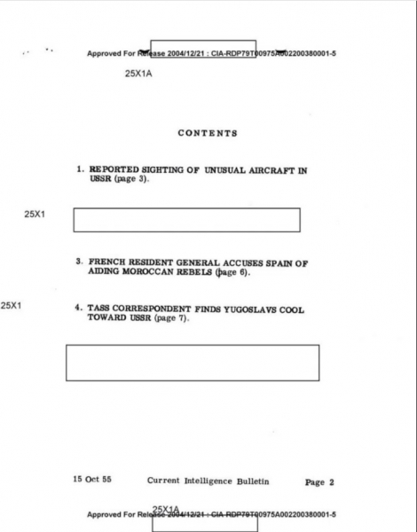 Activistpost.com izvještava: Međutim, Efron je imenovan u drugoj datoteci, od 15. listopada 1955., koja opisuje bizarno viđenje “letećih tanjura” tijekom putovanja vlakom kroz Sovjetski Savez. Službeni dokument CIA-e kaže da su “prijavljeno viđenje neobične letjelice u SSSR-u” napravila “tri pouzdana američka promatrača”.