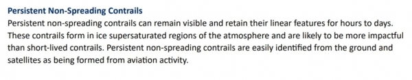 Ključni izvodi iz dokumenta:- Trajni tragovi kondenzacije koji se ne šire mogu ostati vidljivi i zadržati svoje linearne karakteristike satima do dana.