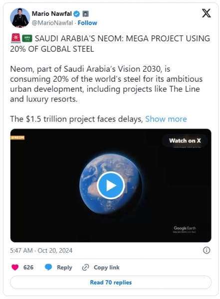 Eksplozija troškova, koja je porasla 17 puta iznad izvorne procjene, gura čak i najbogatije države proizvođače nafte do njihovih granica. Prema najnovijim procjenama troškova, projekt već troši 25 puta više od godišnjeg bruto domaćeg proizvoda Saudijske Arabije i prijeti destabilizacijom cijelog gospodarstva kraljevstva. Konzultanti sada otvoreno govore o “smanjivanju” izvorno grandioznih planova.