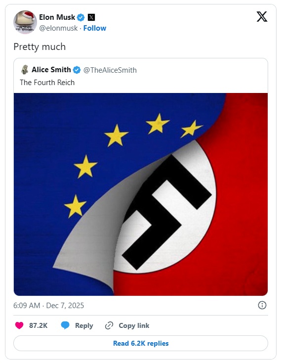 Osnivač SpaceX-a Elon Musk složio se s tvrdnjom da Europska unija (EU) sve više podsjeća na takozvani „Četvrti Reich“.