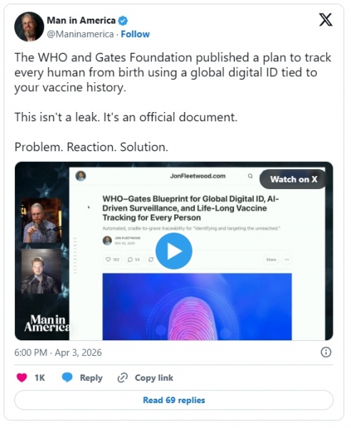 Razlog je Fleetwoodov članak na Substacku, gdje izvještava da WHO, koju sufinancira Zaklada Billa i Melinde Gates, radi na globalnom sustavu koji digitalno mapira pojedince od rođenja.