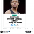 18-godišnja zvijezda brucoša USC-a i sin NBA zvijezde LeBrona Jamesa odveden je u bolnicu nakon što se činilo da je u ponedjeljak pao u srčani zastoj tijekom treninga u USC-u.