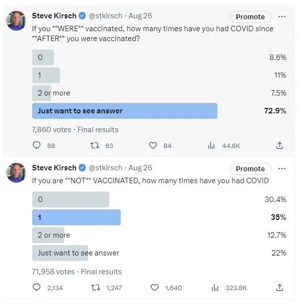 Dakle, i Substack i Tviter ankete su bile velike i podaci su jasno pokazali da je nevakcinisanim bilo bolje.