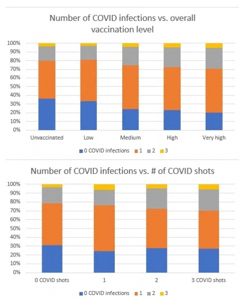 Dve ankete u nastavku bile su zapanjujuće. Jedna je kod nevakcinisanih, druga kod vakcinisanih. Ono što je zapanjujuće je relativna visina prve dve trake u odnosu na treću traku. Ovo je u skladu sa anketom Substack… Manja je verovatnoća da će nevakcinisani imati COVID od vakcinisanih.