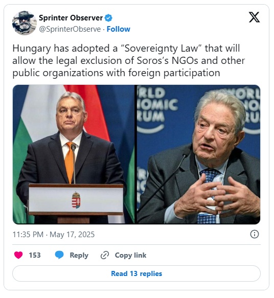 Zakon, koji je Orbánova vlada donijela u subotu, ima za cilj obuzdati utjecaj organizacija koje financiraju tajkuni poput Georgea Sorosa, kojeg premijer optužuje za destabilizaciju zemalja svojom globalističkom agendom. Prema mađarskoj vladi, te su nevladine organizacije olakšale masovnu imigraciju i potkopale kršćanske vrijednosti zemlje.