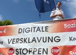 Dana 2. kolovoza 2025. okupilo se preko 300 prosvjednika na bečkom Ballhausplatzu ispred Saveznog kancelarskog ureda kako bi prosvjedovali protiv uvođenja digitalnog eura i “ID Austria” te zahtiji nove izbore.