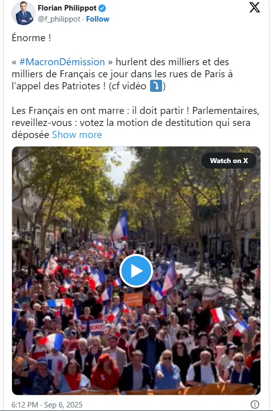 Bayrou se u ponedjeljak suočava s glasovanjem o nepovjerenju dok traži podršku za svoj predloženi proračun, s obzirom na to da se Francuska bori s fiskalnim deficitom od 5,8% BDP-a – gotovo dvostruko više od granice EU od 3%. Njegov plan uključuje smanjenje broja radnih mjesta u javnom sektoru, programa socijalne pomoći i mirovina, mjere koje je oporba osudila kao davanje prioriteta vojnim izdacima nad socijalnom potporom.