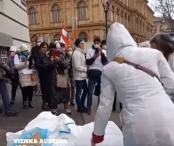 Austrian health workers in front of the Ministry of Health in Vienna, in protest against mandatory immunization and green passports, are throwing away their work clothes ... Today, people all over Austria went on a general warning strike ... !!!