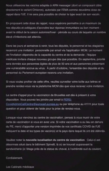 Kao što gornji interni dokument pokazuje, Europska komisija naporno radi na provedbi kampanje zimskog cijepljenja za osoblje Komisije i Europski parlament.
