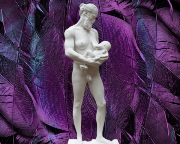 Statua “Agape” visoka 3,5 metara prikazuje nagog muškarca s klasičnim muškim crtama poput širokih ramena, uskih kukova, penisa i brade, a ima i ženske grudi i doji bebu.