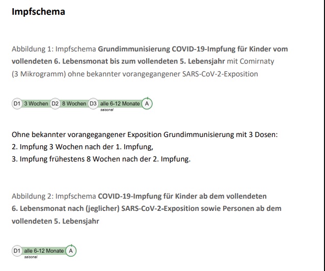 Savezno ministarstvo zdravstva, na čelu s ministrom zdravstva Rauchom (Zeleni), preporučuje datum 18. srpnja. šestomjesečno cijepljenje protiv Covid-19. Službeni PDF dokument nalazi se ovdje. Odnosi se na djecu od 6 mjeseci starosti.