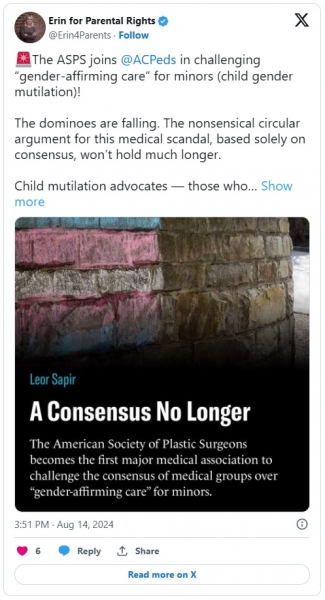 Ovo pozicioniranje je u oštroj suprotnosti s prethodnim narativom da “sva glavna medicinska udruženja u SAD-u” podržavaju “liječenje promjene spola” za maloljetnike. Kritičari su dugo tvrdili da se ovaj navodni konsenzus ne temelji na visokokvalitetnom istraživanju ili desetljećima poštene i snažne rasprave među kliničarima s različitim stajalištima i iskustvima. Umjesto toga, to je rezultat malog broja ideološki motiviranih liječnika u odborima usmjerenim na LGBT.