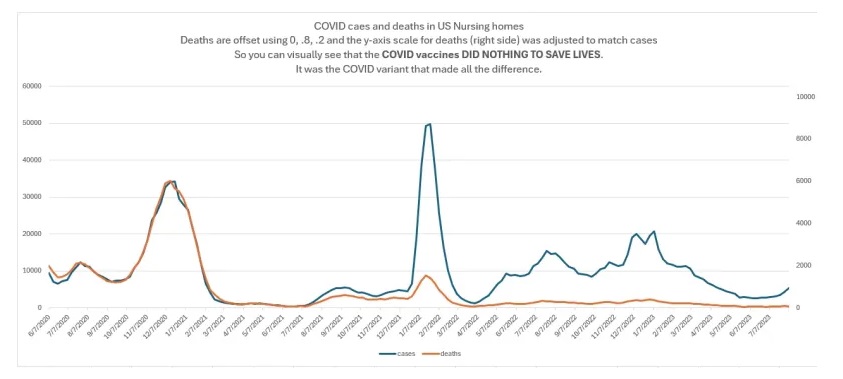 Podaci iz 15 058 staračkih domova u SAD-u koje je prikupio Medicare nedvojbeno dokazuju da cjepiva protiv COVID-a nisu učinila NIŠTA na smanjenju smrtnosti od COVID-a . Postojali su samo nedostaci. Upravo su varijante COVID-a promijenile stopu smrtnosti; cjepiva nisu učinila baš ništa. Kako je CDC mogao propustiti ovu očitu točku?