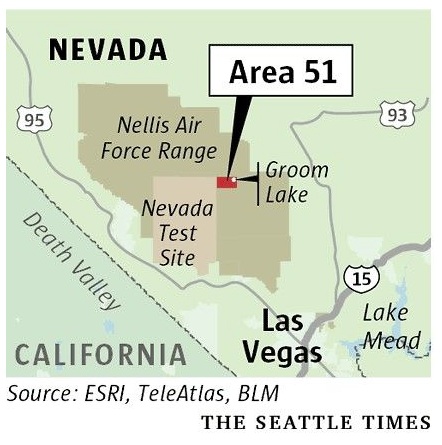 „Područje 51“, smješteno oko 130 kilometara sjeverozapadno od Las Vegasa, dobilo je svoje posebno ime prema kartama Komisije za atomsku energiju. Ovaj udaljeni dio pustinje odabran je 1955. za testiranje visokoletećeg špijunskog zrakoplova U-2. Od tada se koristi za testiranje A-12, nevidljivog lovca F-117 Nighthawk i drugih vojnih zrakoplova. Program testiranja deklasificiran je tek 2013. nakon zahtjeva za dokumentima. Do tada je USAF samo rekao da se tamo odvijaju „razne aktivnosti, neke od njih povjerljive“. Sada se kaže da testira borbeni zrakoplov 6. generacije F-47.