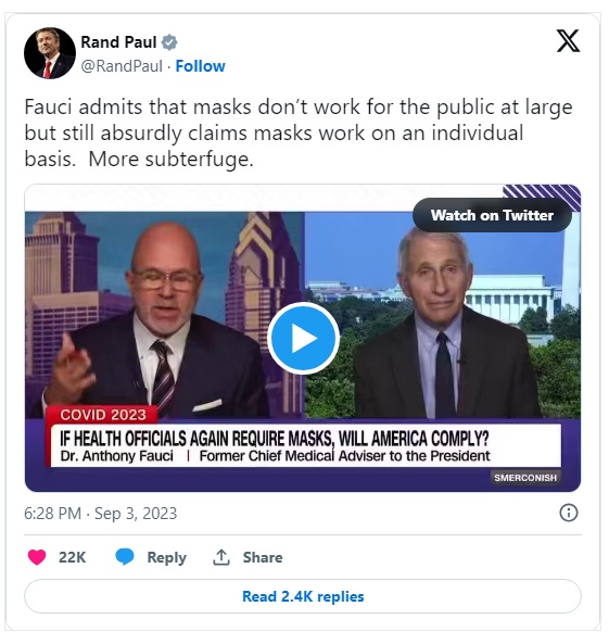 Former "spokesman" for President Biden, Dr. Anthony Fauci, has been branded a "fraudster" and a "liar" after admitting that there is now no evidence to suggest that wearing face masks has helped stop the spread of Covid.