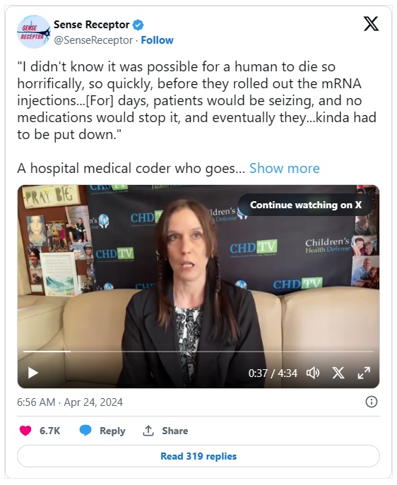 "I didn't know it was possible for a human to die so horrifically, so quickly, before they rolled out the mRNA injections...[For] days, patients would be seizing, and no medications would stop it, and eventually they...kinda had to be put down."