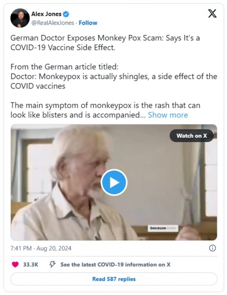 From the German article titled: Doctor: Monkeypox is actually shingles, a side effect of the COVID vaccines https://www.ninefornews.nl/arts-apenpokken-zijn-in-werkelijkheid-gordelroos-een-bijwerking-van-de-covidvaccins/