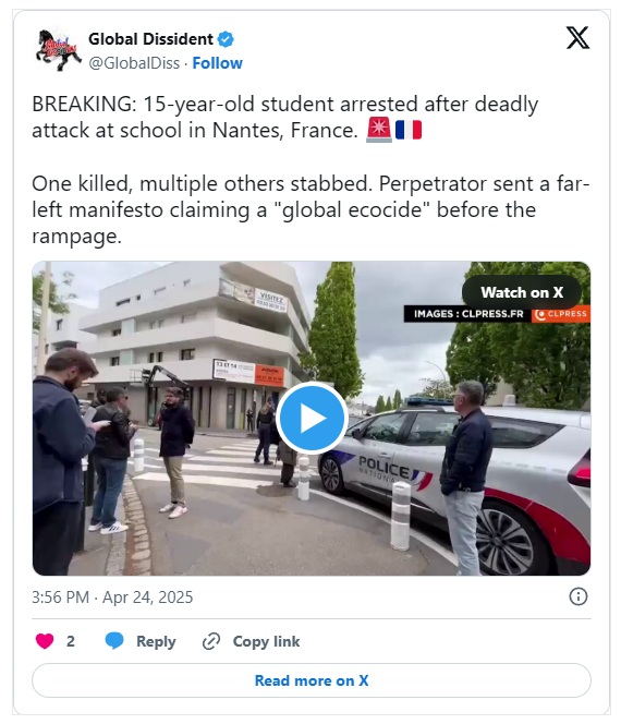 BREAKING: 15-year-old student arrested after deadly attack at school in Nantes, France ...